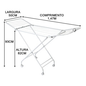 Varal de Piso Com Abas e Rodízios – 1,47×0,50×0,93m – 10,7m De Roupas – CZ Platinum