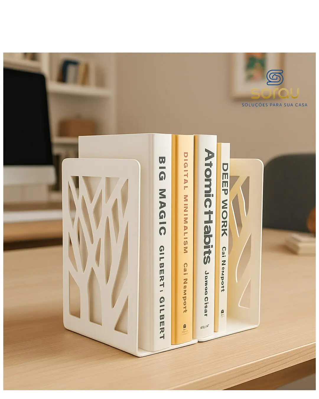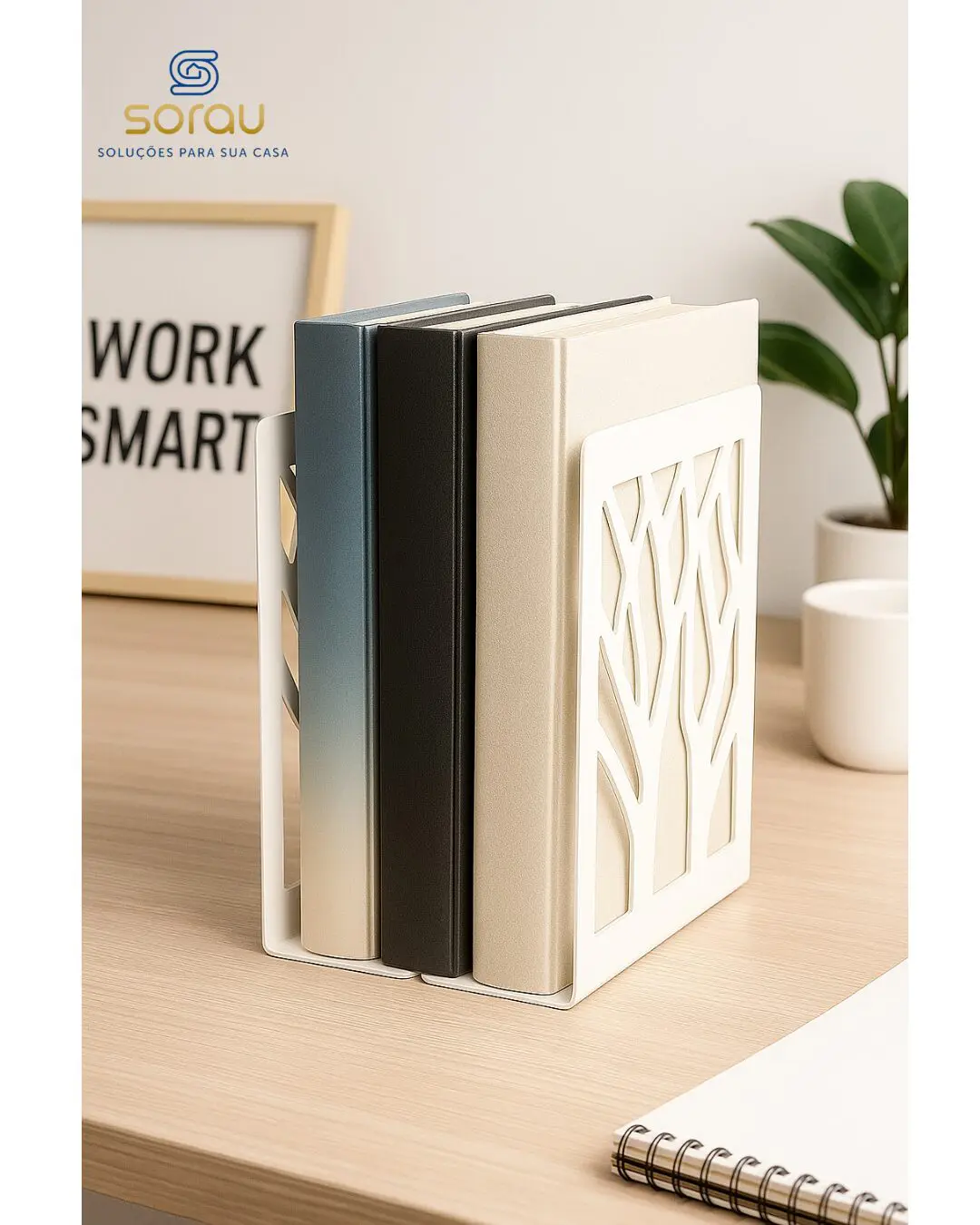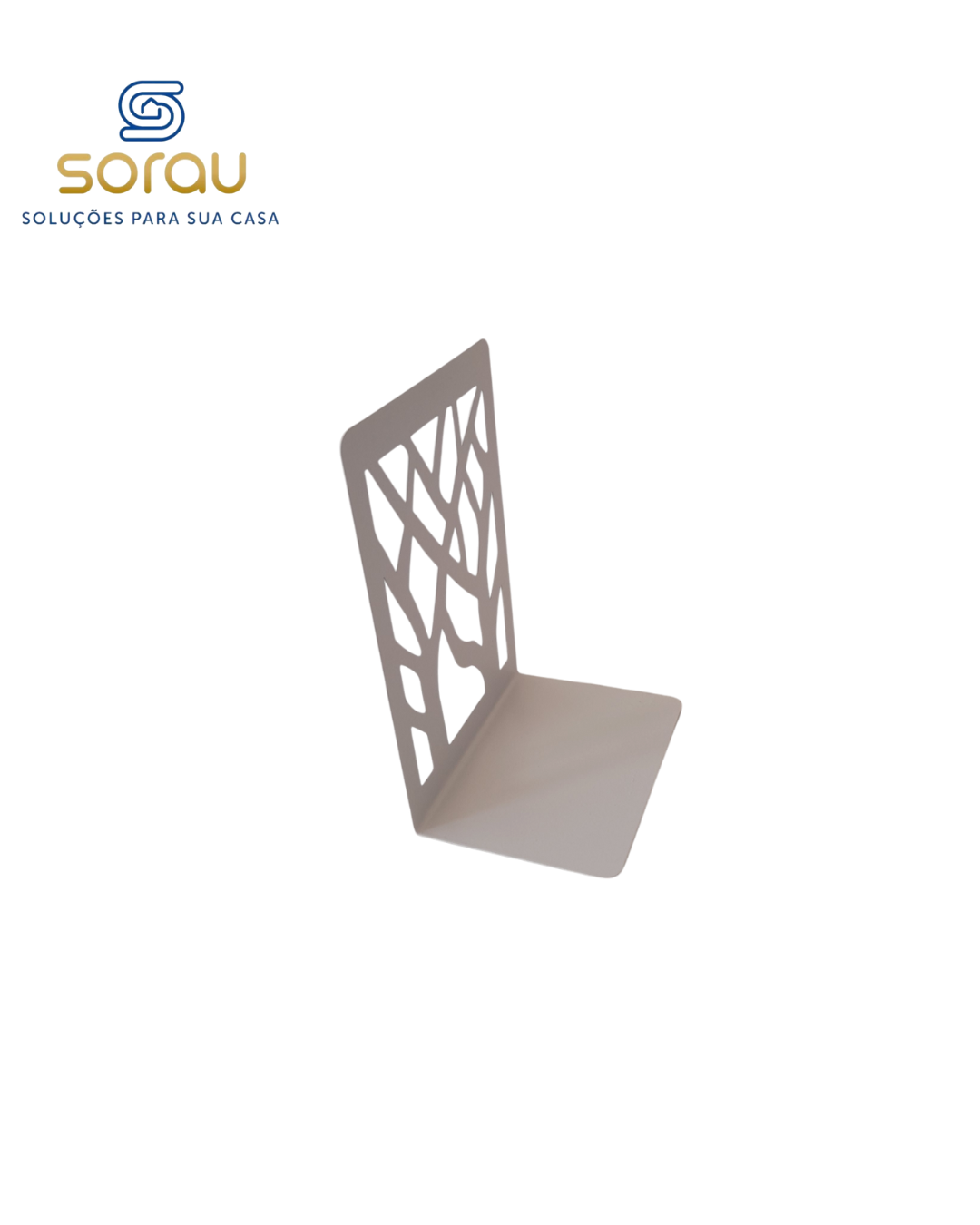 Este suporte de livros decorativo em metal branco é a escolha perfeita para quem busca funcionalidade aliada ao design moderno. Com acabamento fosco e recortes artísticos em formato de galhos de árvore, ele transforma qualquer estante ou mesa em um verdadeiro destaque na decoração.