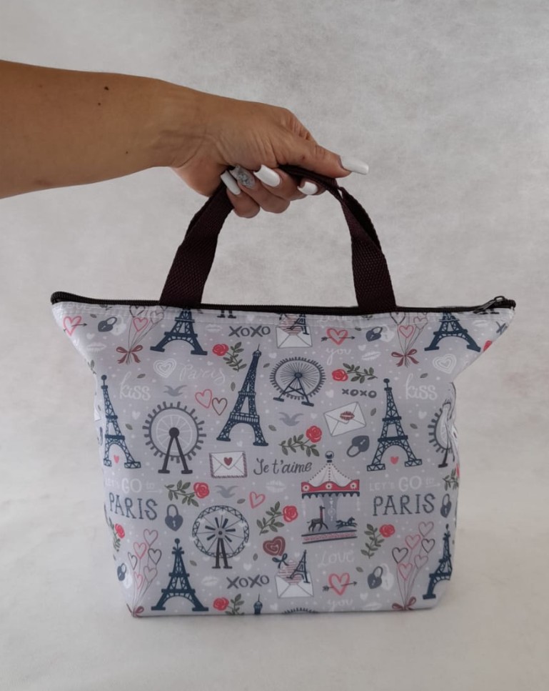 Este acessório é funcional e elegante, perfeito para transportar alimentos e bebidas, mantendo itens frescos em atividades ao ar livre, como acampamentos, passeios à praia ou trilhas. Seu design inspirado em Paris une praticidade e sofisticação, enquanto as alças proporcionam um transporte fácil e confortável.