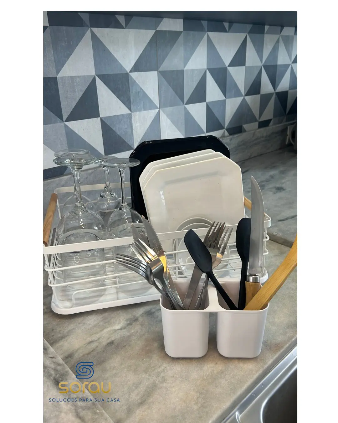 · Design Inteligente: A bandeja coletora de água inclusa previne o acúmulo de água na pia. Após o uso, basta retirar o escorredor de cima da bandeja, despejar a água na pia e manter sua bancada sempre seca e organizada.