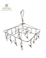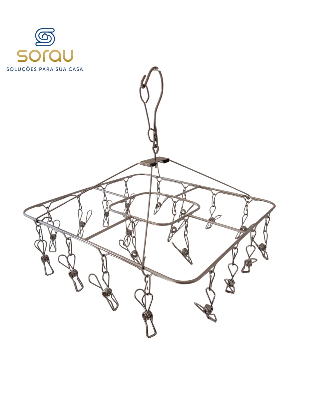 Seu formato quadrado otimiza o uso do espaço, permitindo a secagem de várias peças simultaneamente sem sobreposição. A estrutura é equipada com múltiplos prendedores distribuídos de maneira uniforme nas laterais e na parte inferior do suporte, proporcionando firmeza e segurança para peças como: Meias, Roupas íntimas, Panos de prato, Máscaras de tecido e Peças de bebê.