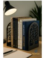 Este suporte de livros metálico combina resistência e beleza em um só produto. Com um elegante design vazado em formato de árvore, ele traz um toque decorativo e moderno para sua estante, mesa ou prateleira.
